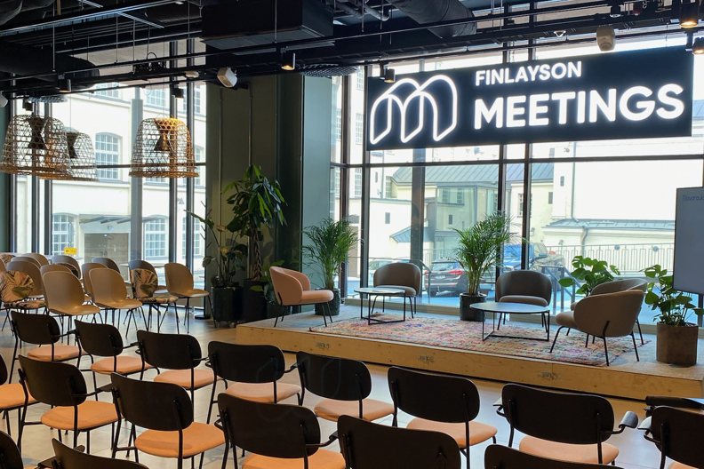 ”Seminaaripäivän päätteeksi voi järjestää illanvieton, jolloin avaamme suurimpaan neuvotteluhuoneeseen yhdistyvän tapahtumatilamme. Tämä mahdollistaa sadan hengen tapahtumat”, Finlayson Meetingsin Comminity Manager Karita Säynevirta sanoo.